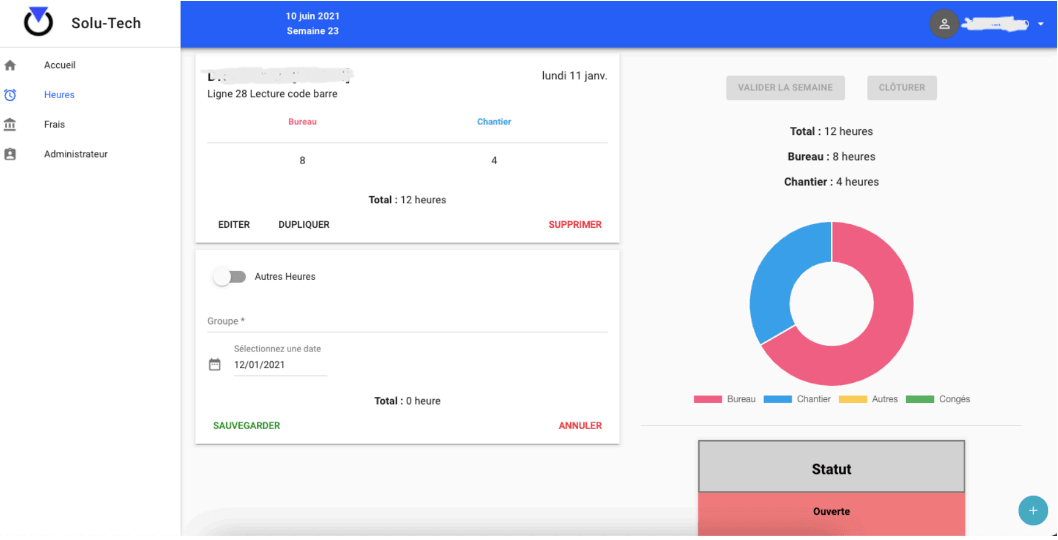 Completely autonomous creation of an internal web application to manage the life of the company (expense reports, holidays, etc.).